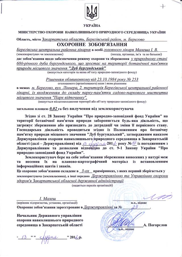 - м. Берегово, парк міськлікарні, вул. Ліннера, 2