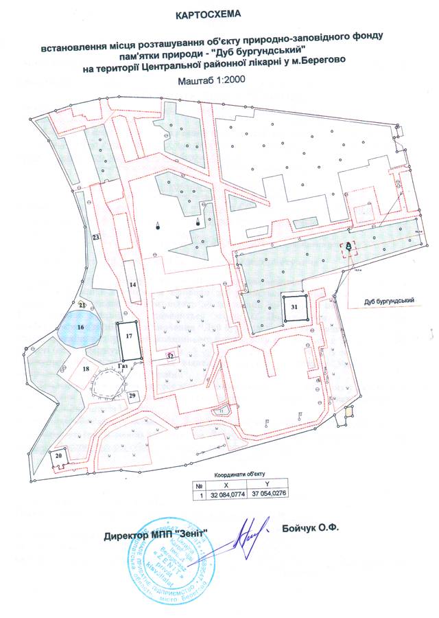 - у природному стані 600-річний дуб бургундський, 2 дерева