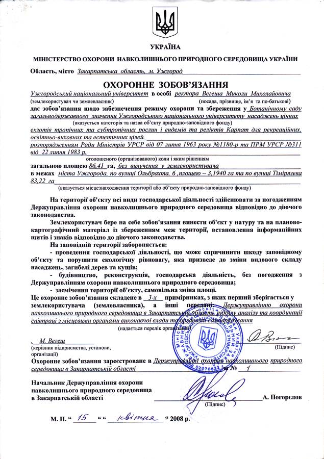 Ботанічний сад Ужгородського державного університету (Ботанічний сад УжНУ) Ботанічний сад загальнодержавного значення