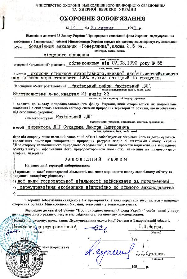 Говерлянка Ботанічний заказник місцевого значення Площа 2,5 Район Рахівський Розташування Білотисянське л-во, квартал 21, виділ 23, урочище Говерлянка Приналежність ДП "Рахівське ЛДГ" Законодавство Ріш.ОВК від 07.03.1990 р. № 55 Охороняються осередок арніки гірської Фотогалерея