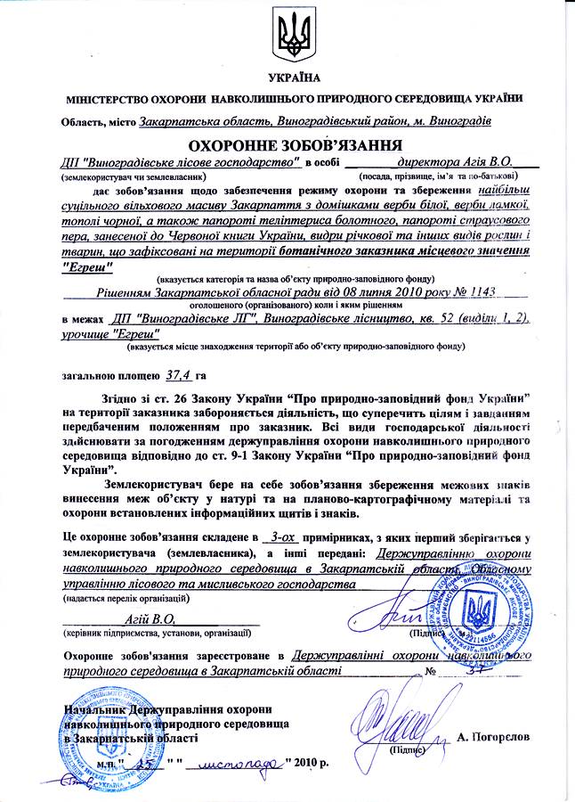 - Виноградівське л-во, квартал 52, виділи 1, 2, урочище Егреш