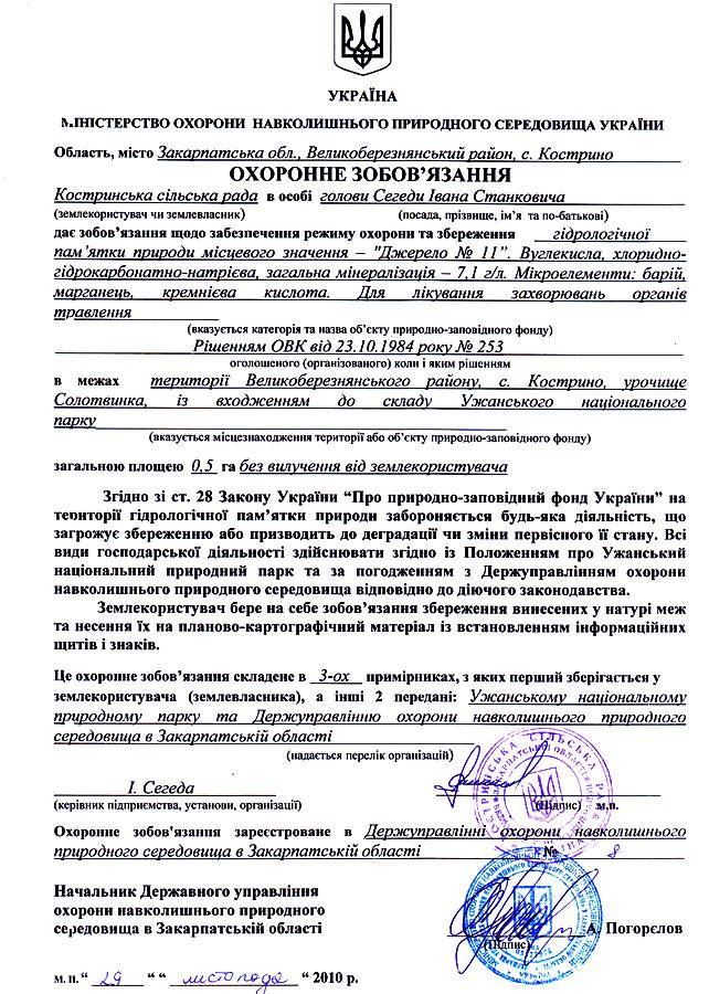 - Ріш. ОВК від 23.10.1984 р. № 253 (Увійшла до складу НПП "Ужанський" ПРМ УРСР від 27.09.1999 р. № 1230/99)