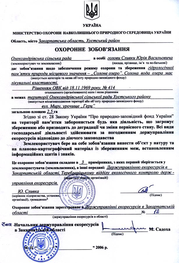 Озеро солене Гідрологічна пам’ятка природи місцевого значення