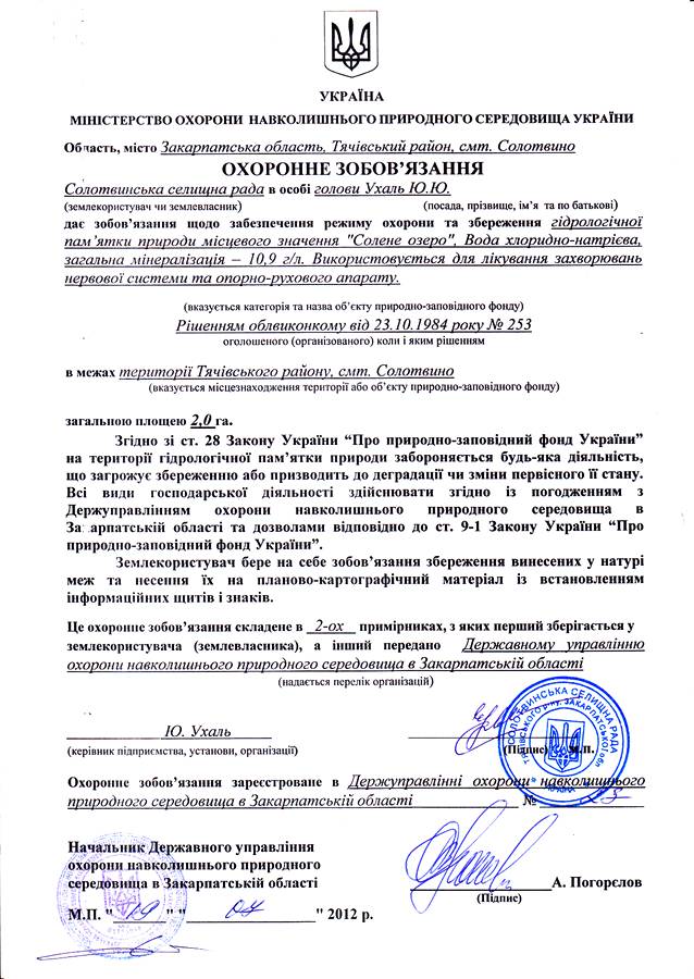 Солене озеро Гідрологічна пам’ятка природи місцевого значення