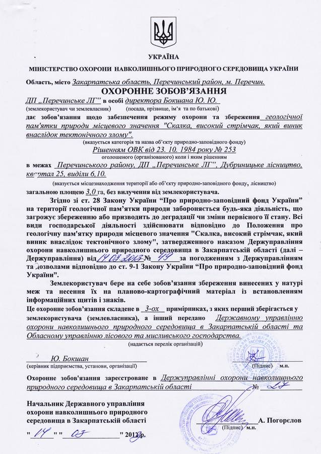 Скалка, високий стрімчак, який виник внаслідок тектонічного злому Геологічна пам’ятка природи місцевого значення Площа 3 Район Перечинський Розташування над с. Новоселиця, Дубриницьке л-во, квартал 25, виділ 6, 10 Приналежність ДП "Перечинське ЛГ" Законодавство Ріш. ОВК від 23.10.1984 р. № 253 Охороняються живописні скелі з включенням альб-сеноманських мергелів та викопної фауни тисальської свити. Фотогалерея