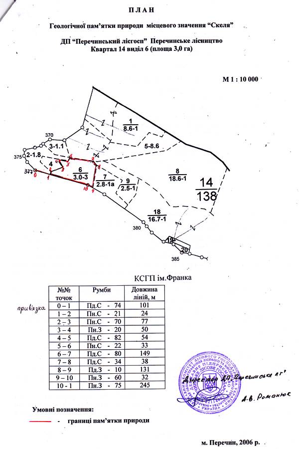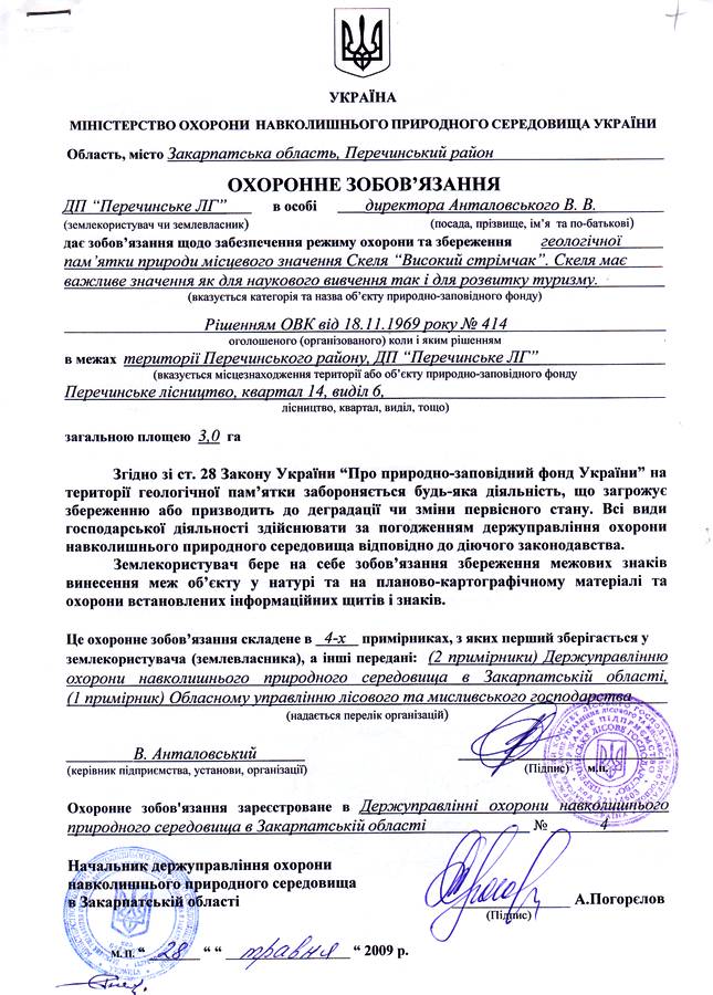 Скеля Високий стрімчак Геологічна пам’ятка природи місцевого значення Площа 3 Район Перечинський Розташування Перечинське л-во, квартал 14, виділ 6 Приналежність ДП "Перечинське ЛГ" Законодавство Ріш. ОВК від 18.11.1969 р. № 414 Охороняються скеля, що має важливе значення як для наукового вивчення, так і для розвитку туризму. Фотогалерея