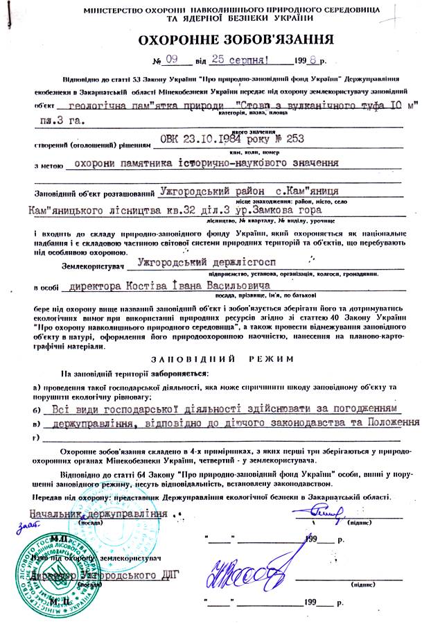 - невицький останець, жерлова частина вулкана, складений туфолавою неогенового віку. Має історично-наукове значення