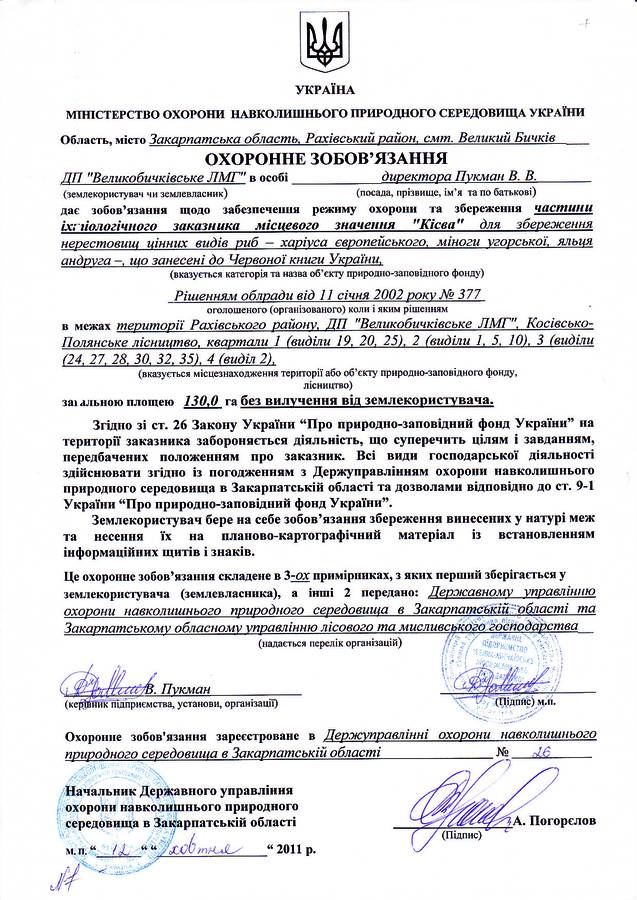 - збереження нерестовищ цінних видів риб - харіуса європейського, міноги угорської, яльця андруги