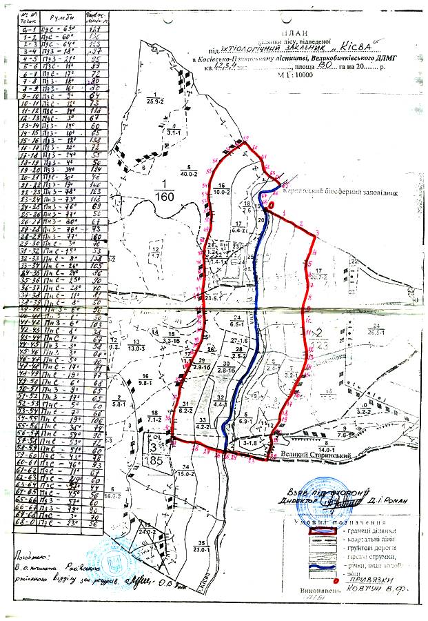 - Косівсько-Полянське лісництво, квартали 1 (виділи 19, 20, 25), 2 (виділи 1, 5, 10), 3 (виділи (24, 27, 28, 30, 32, 35), 4 (виділ 2)