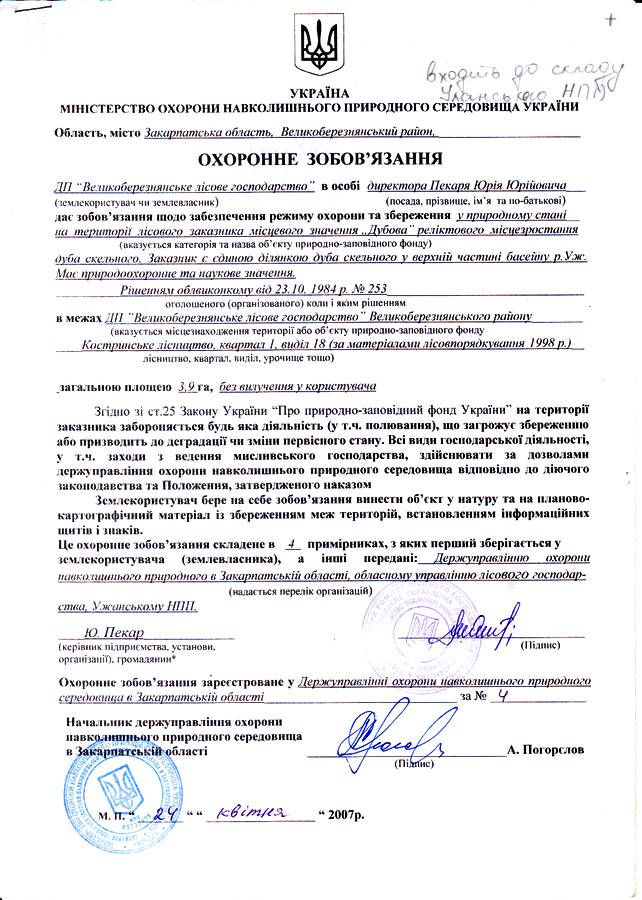 - реліктове місцезростання дуба скельного у верхній частині басейну ріки Уж. Має природоохоронне та наукове значення.