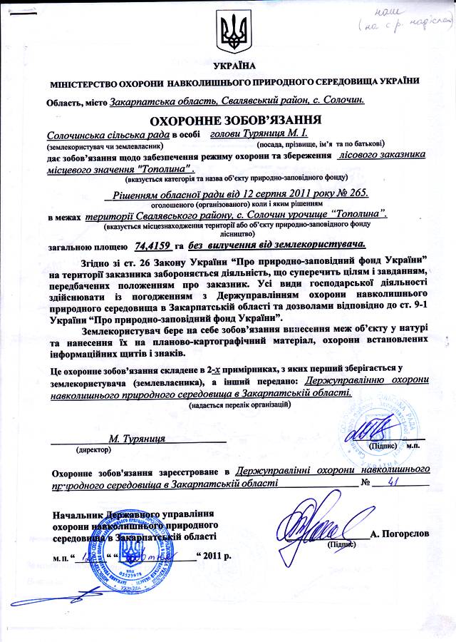 - Рішення обласної ради від 12 серпня 2011 року № 265