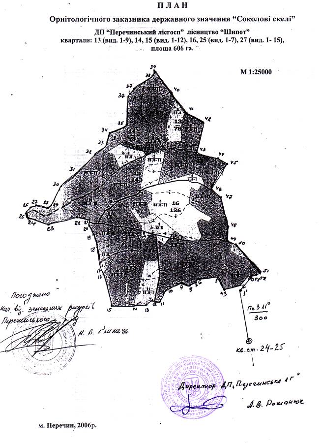 - л-во Шипот, квартал 13, (виділ 1-9), квартал 14, квартал 15 (виділ 1-12), квартал 16, квартал 25, (виділ 1-7), квартал 27, (виділ 1-15)