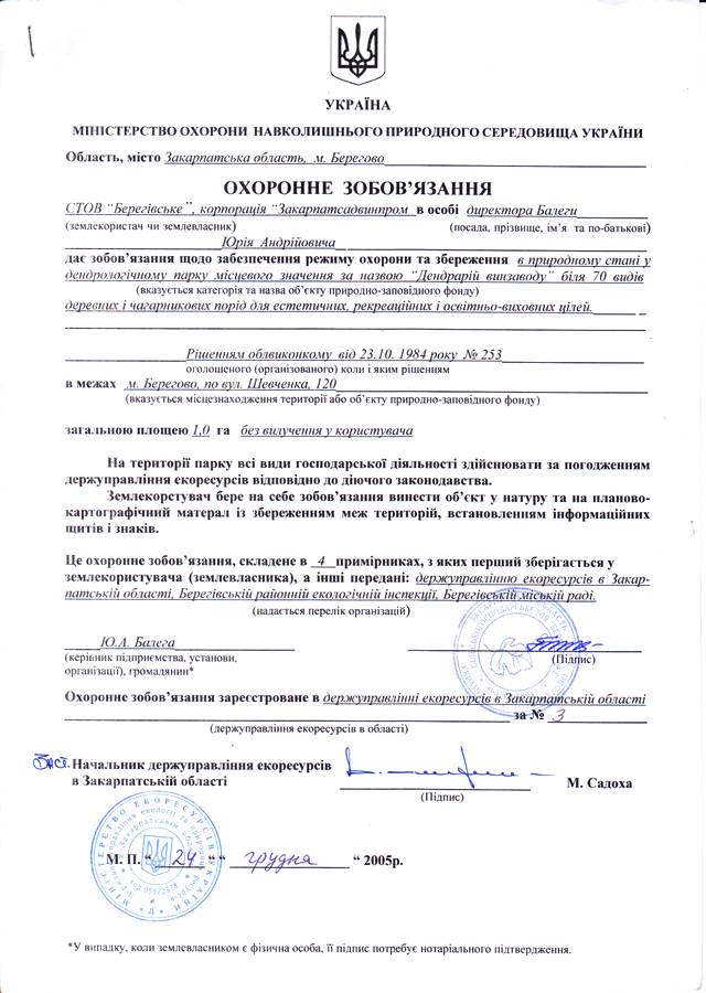 Дендропарк (дендрарій винзаводу) Парк-пам’ятка садово-паркового мистецтва місцевого значення
