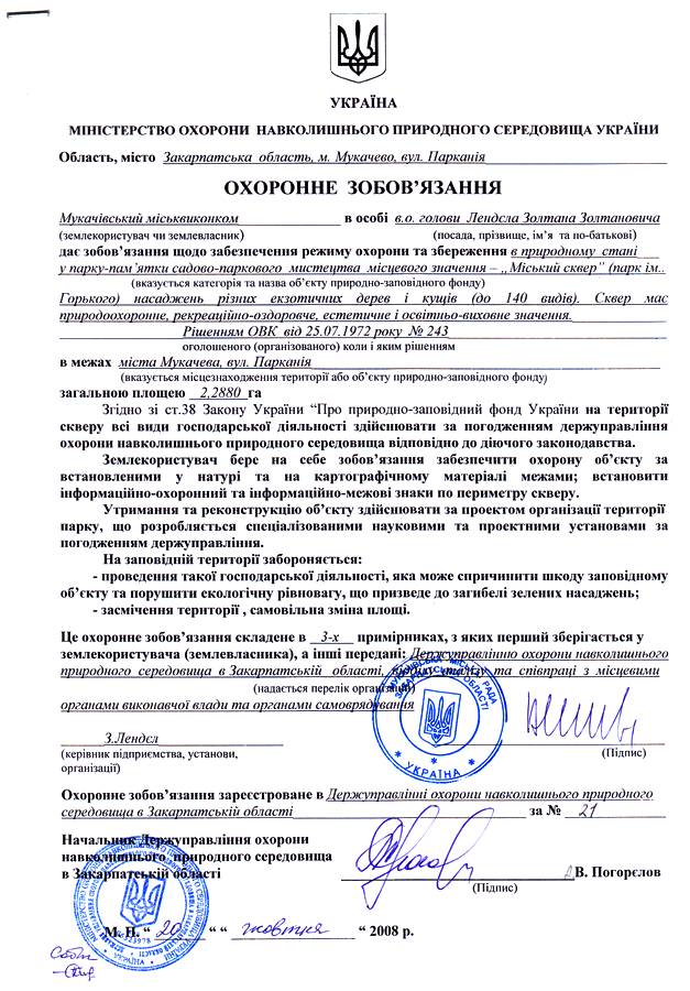 - Ріш. ОВК від 25.07.1972 р. № 243, Ріш. облради від 25.07.2008 р. № 614, Ріш. облради від 04.12.2008 р. № 708