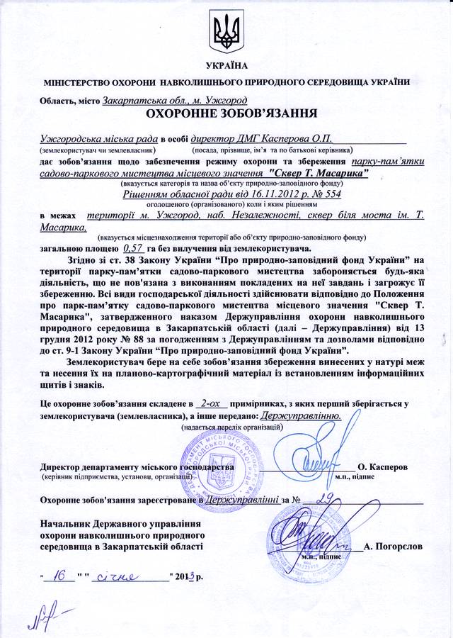 - м. Ужгород, наб.Незалежності, сквер біля моста ім.Т.Масарика