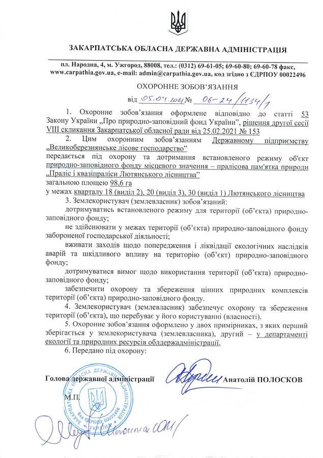 - Рішення Закарпатської обласної ради від 25.02.2021 №153