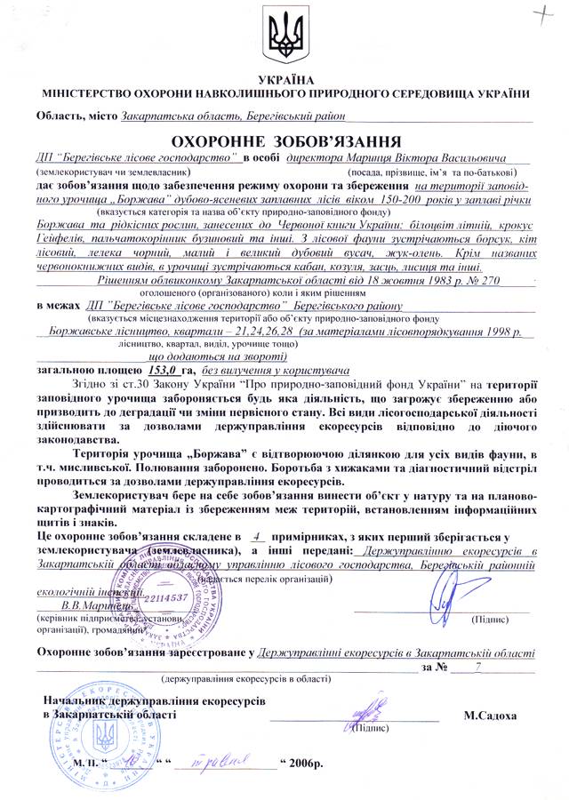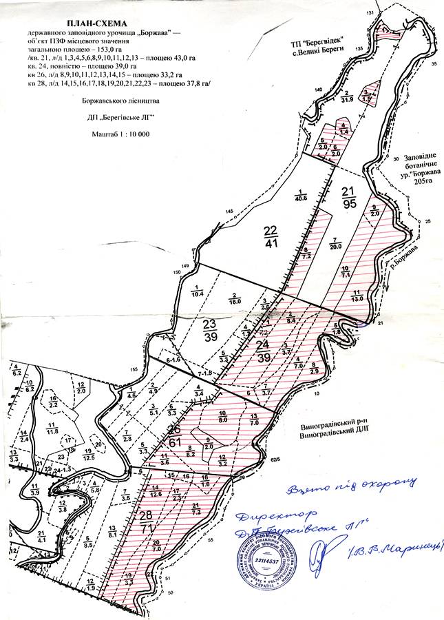 - Боржавське л-во, квартал 21(виділ 1,3-6, 8-13), квартал 24 (виділ 1-10), квартал 26 (виділ 8-15), квартал 28 (виділ 14-23)