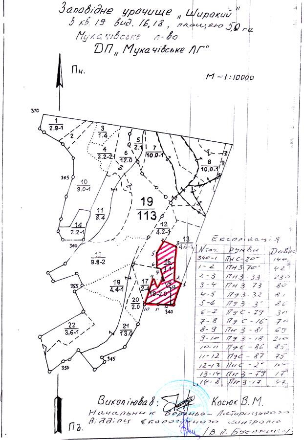 - Мукачівське л-во, урочище "Широкий" квартал 19, виділи 16, 18